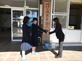 昼休みの時間、ボランティア委員が交代で1・2年全クラスをまわり、生徒のみなさんに募金を呼びかけました。集まった皆さんからの大切な募金を、先日、2年の豊原さん、立山さんが代表して、小林市社会福祉協議会の方にお渡ししました。豊原さんは「想像していたより沢山の募金が集まり、地域のためのよい活動になりました」と感想を述べました。