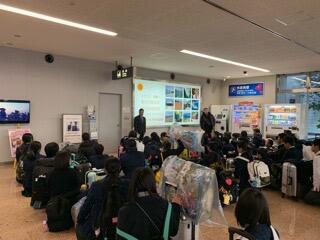 羽田空港で全体説明を受けています。