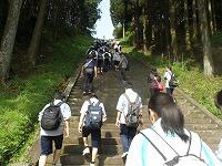 石貫階段では息を切らしながら段数を数える生徒、部活動で鍛えられた体力を使い駆け上がる生徒もいました。