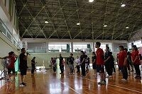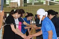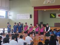 当初の予定では、男子はグランドでソフトボール、女子は体育館でソフトバレー・バドミントンの予定でしたが、雨が降ったため、男女とも体育館でソフトバレーとなりました。