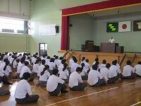 朝1番で大清掃を行い、その後表彰式と終業式が行われました。