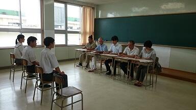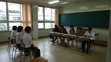 生徒は、2~4人の集団面接の形態で指導を受け、9月16日に解禁される就職試験本番に向け、本日は課題抽出をします。