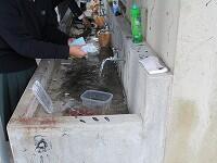 気温が低く、水道の水が冷たいと言いながらも生徒は楽しそうに一生懸命お弁当箱を洗っていました。