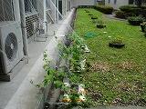 夏の暑さ対策として、校内3ヶ所に『ゴーヤ』のグリーンカーテンを先生方で設置しました。先週すでに設置したものは、約1メールほどに成長していました。