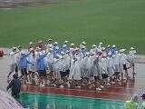 総合開会式では、雨の中、旗手を先頭に一年生全員での元気の良い行進が見られました。