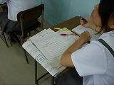 学校説明後の体験授業では、簿記の授業で貸借対照表、文書デザインの授業でオリジナルうちわの作成を行いました。体験入学の最後に行ったアンケートでは、商業科目に興味を持ったという意見もあり、とても嬉しく思います。