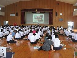 本日午後2時より、西都市立妻中学校にて高校説明会が行われました。3年生約150名と保護者あわせて約200名が本校の話を聞いてくれました。会場となった体育館は非常に蒸し暑い状態でしたが、みなさん真剣に説明を聞いてくれていました。ありがとうございました。