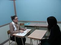 生徒の日常の様子、趣味、卒業後の進路などについて、ALTのディアドラ先生が生徒へインタビューを行っています。生徒自身のことについて考え、英語に翻訳し、練習を繰り返して臨んでいるようです。質問に対して一生懸命答えているのが伝わってきました。