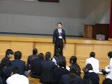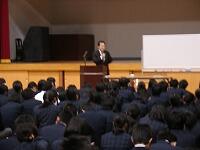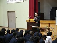 学校からの現状報告(教務部・生徒指導部・進路指導)、2学年次コース制の説明、修学旅行についての説明を行い、学校生活のあり方、来年度の目標等について保護者の方々にも理解を深めてもらい、より良い学校生活に向けて進んでいきたいと思います。後半には、三松保育園長 林 和豊氏を招いて「自立に向けて」という演題で講演をしていただきました。思春期の問題行動の背景について、子供の発達段階と家庭(親)の役割について話していただきました。