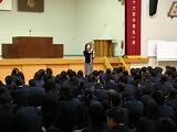 本日,、3年生の6限目「総合的な学習の時間」に、労働基準監督官 岡元秀樹氏を招いて「労働基準法の基本を学ぶ」の講演を行いました。4月から社会人として社会に出て行く生徒たちに、働く上での心構え、働くときのルールについて講話していただきました。