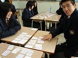 本日行われた3年生の『現代文』の中で、生徒が『クラスのみんなへのメッセージ』、『親、後輩へのメッセージ』のテーマで短歌を作成し、かるたの札に作り変え、かるた大会を行いました。自分たちの作った短歌を読み合いながら盛り上がっていました。
