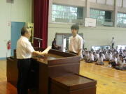 本校で2年間勤務していただいた、ALTの鳥巣丹(トリスタン)先生の離任式を行いました。お祭りに参加されたり、合気道にチャレンジされたり、積極的に日本文化を学ばれ、離任式での挨拶は、日本語で行われました。最後に「英語を怖がらずチャレンジしてください。」と送っていただきました。何事も経験、チャレンジすることから始まります。職員、生徒負けずに常にチャレンジしていく気持ちで頑張っていきたいと思います。
