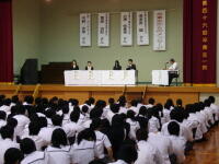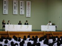 メッセージの中に「社会に出ることは(社会人として)自分の行動には責任がともなう」という言葉を送ってもらいました。在校生に一番身近な存在からの言葉をみんな真剣に聞くことができました。高校生活にも「責任」を感じ、行動できる生徒になって行ってほしいと思います。