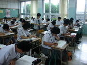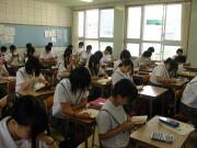 今年度からの取り組みとして、一年生は終礼前10分間学習を行っています。基礎学力の向上、学習習慣の定着を目的とし、基礎学習を行っています。少しずつ積みたてていき、三年後に活かせるように取り組んでいきたいと思います。
