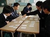 本日行われた3年生の『現代文』の中で、生徒が『クラスのみんなへのメッセージ』、『親、後輩へのメッセージ』のテーマで短歌を作成し、かるたの札に作り変え、かるた大会を行いました。自分たちの作った短歌を読み合いながら盛り上がっていました。