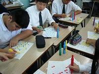 1年生は、モザイク壁画にチャレンジしています。何が描かれているかはできてからの楽しみ!一生懸命に取り組んでいます。一人のノルマは10枚、残り2週間で完成目指して頑張りましょう。