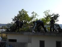 調殿祭を1週間前にひかえ、PTAおやじの会のみなさんと、職員、男女バドミントン部員が校内清掃作業を行っていただきました。