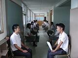 昨日進学・就職激励会を行い、3年生もいよいよ来週には試験が開始されます。担任の先生に面接マナー・応答の仕方等を再確認してもらっています。クラスメートと廊下で向かい合いお互いに質問・応答を行い確認を行い、お互いにの様子を見て、改善点、良かった所を言い合っていました。三年生の教室、廊下に今までにない緊張感が流れていました。