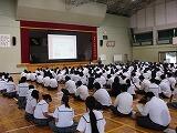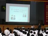 社会問題にもなっているDV(ドメスティック・バイオレンス)について、理解を深めることにより、他人を思いやる優しいを持ち、お互いを認め、支え合う人間関係を形成していくことを目的とし、NPO法人ハートスペースM 財津 三千代様を講師とし、人権教育講演会を実施しました。