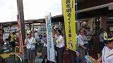 ↑軽トラでの広報活動の様子 ↑Aコープでの広報活動の様子