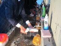気温が低く、水道の水が冷たいと言いながらも生徒は楽しそうに一生懸命お弁当箱を洗っていました。