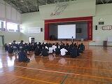 全校生徒66名、職員全員が本校の視聴覚室に集まり、進路に向けて進路指導主事を中心にお話がありました。