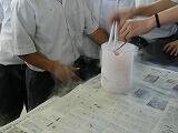ゴムボール・花などを液体窒素に入れることで、その前後の状態変化を確認しました。ゴム風船を利用した実験では、風船の中の空気が冷やされて液体になり、逆に液体窒素からそれを出すことで元の状態(気体)に変化していく様子を観察することができ、温度による変化を体験できたと思います。