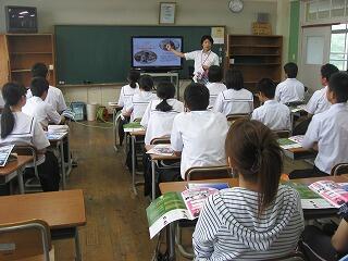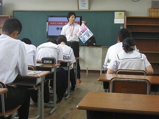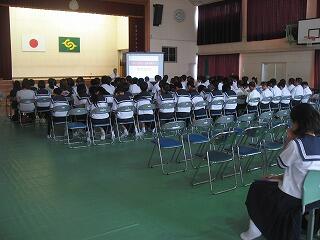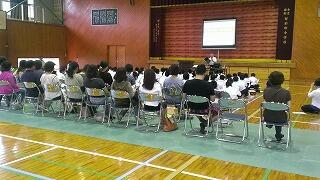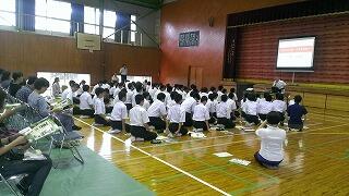 今日は、西都市立都於郡中学校に説明会へ行ってきました。体育館に集まった全校生徒76名に話をしましたが、司会進行は中学生でした。雨が降る生憎の天気にもかかわらず参加してくださった保護者約20名にも話を聞いていただきました。