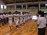 期末テスト1日目の科目が終わったあと全校集会を開いて、空手道・野球部の壮行式を行いました。空手道部主将から九州大会・全国大会に向けて、野球部主将から7月7日(日)に行われる1回戦の日向学院戦に向けての意気込みを話してもらいました。