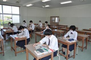 コロナウイルス感染予防のために週3日の登校日を設けました。およそ1ヶ月ぶりの授業ですが、チャイムが鳴ればすっかりいつもの様子です。休業中の宿題の取り組みは良好でした。先生たちもようやく準備してきた授業を実施することができました。