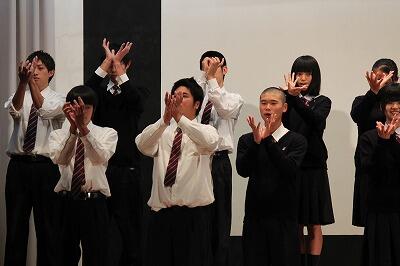 手話選択生による発表は、手話での合唱です。「花は咲く」を歌っています。