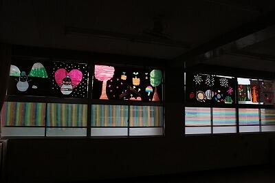 綺麗なセロハンを使ったアートです。