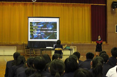 発表前の都農高校生。緊張しています。