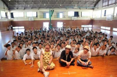 石塚英彦さん、山崎まさよしさん、三宅伸治さんの3名が来校し