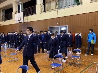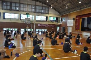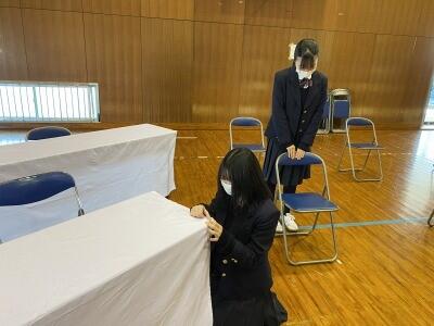 この日は体育館の会場設営を行い、スクールカウンセラーの先生のお話を聞いた後、卒業式の入退場の練習をしました。