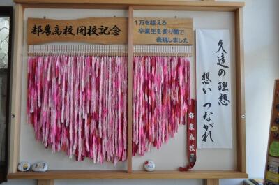都農高校最後の卒業生として先輩たちの折り鶴の横に飾りました。
