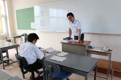 部活動が停止する考査1週間前から、都農高校では大々的に考査前指導が始まります。