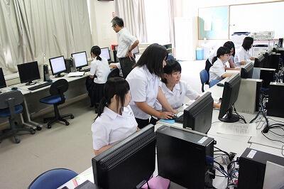 1年生の社会と情報です。生徒同士の教え合いも活発です。