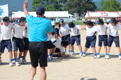 タイヤ取り、綱引き、玉入れのハイブリッド競技。