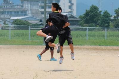 広~い都農高校の野球場を、ぐるぐる走っています。