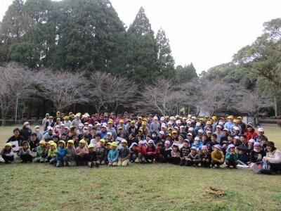 都農町内の幼稚園、小学生、中学生、高校生が一同に集まり
