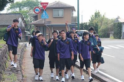 都農高校 避難訓練 移動中