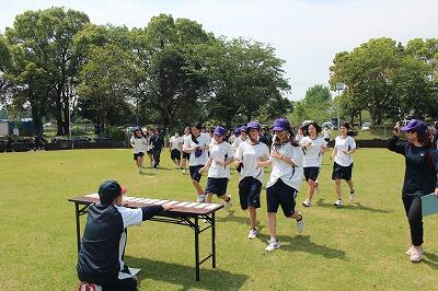 都農尾鈴マラソンに向けて、部活動生と教職員が熱いバトルを繰り広げます(?)