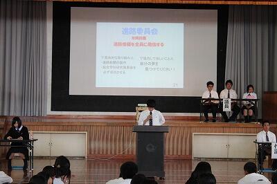 まずは、生徒会が提案した今年度のスローガンが採択されました。