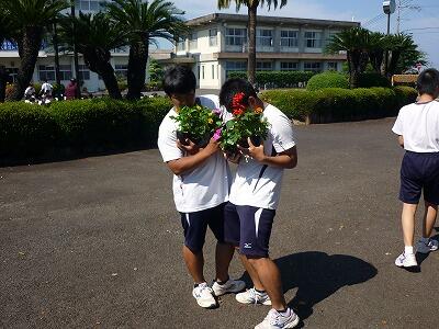 各自が好きな花を選び、クラスの花壇に植えにいきます。