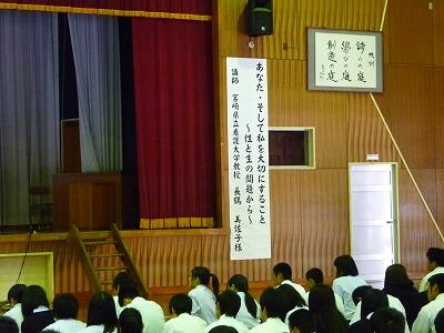 今回の講演を聞き、生徒達が「いのちへの責任を持てる大人」へと成長してほしいと感じました。