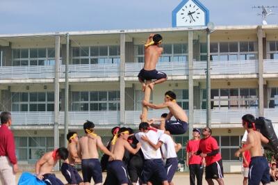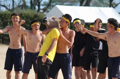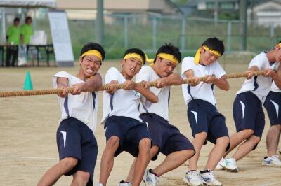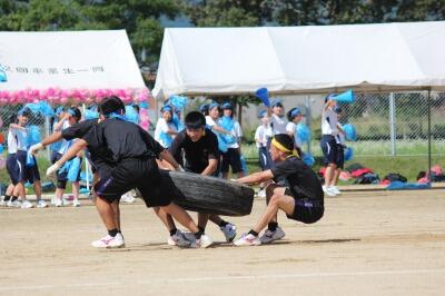 タイヤ取り、綱引き、玉入れのハイブリッド競技。