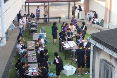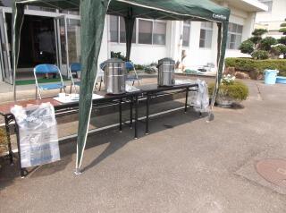 その頃、外ではPTAの皆様によって栄養会の準備が行われていました。