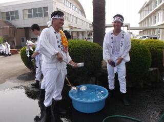 学校では、御輿を迎えるためPTAの皆様が給水活動をしてくれました!