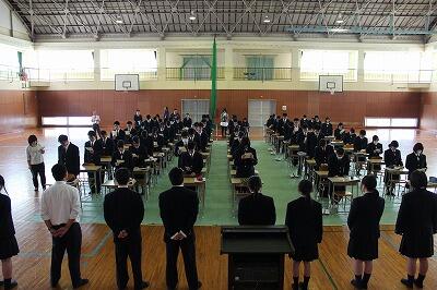 体育館に机を運び、1日かけて高校生活のルールを学びます。